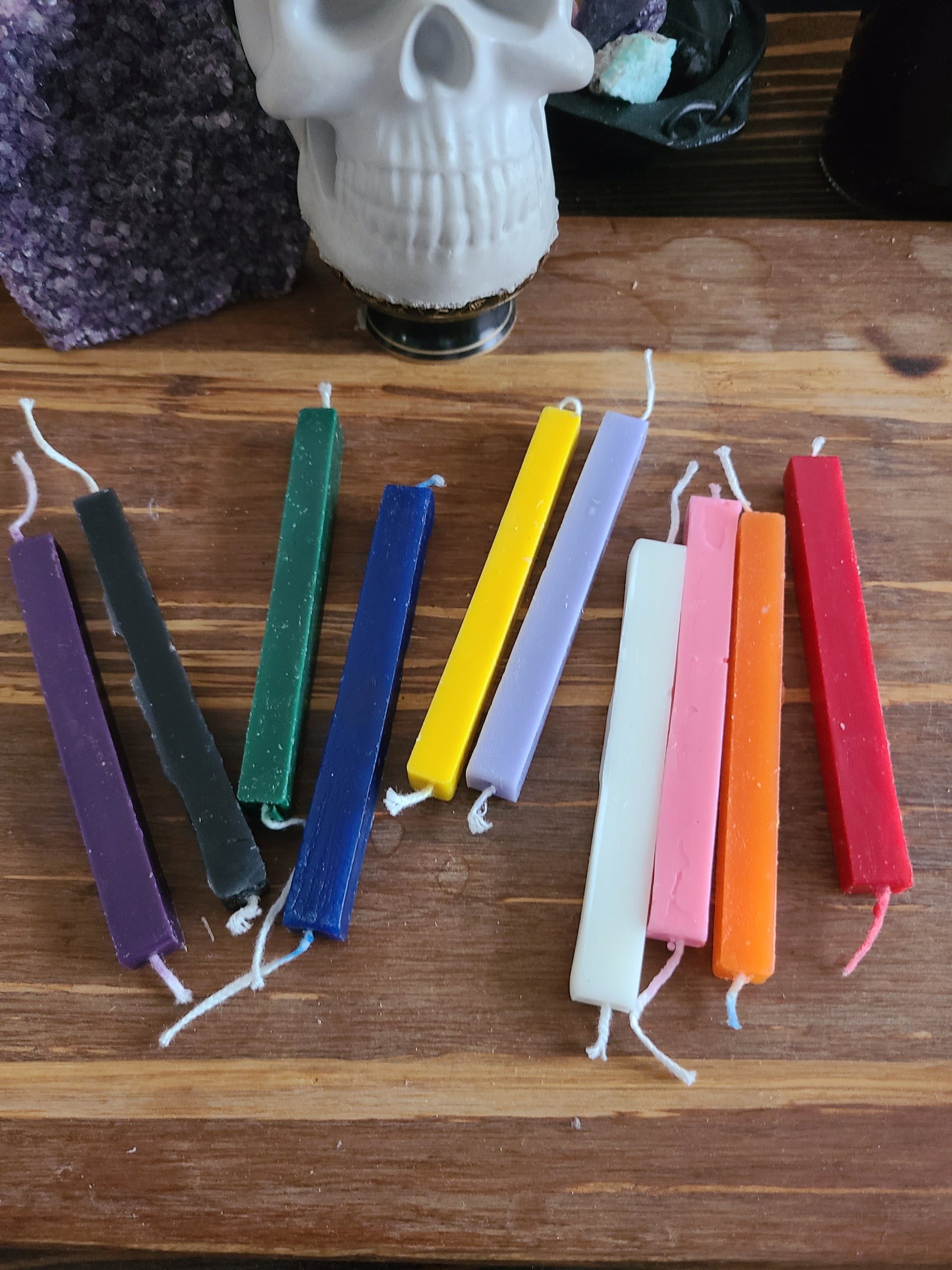 Elevate your spellwork, rituals, and magical practice with this premium 10-pack of ritual candles, designed for all types of witchcraft and spiritual ceremonies. Each candle is crafted to burn cleanly and steadily, ensuring they last throughout your entire ritual without distraction. With colors that cover a range of spiritual intentions—protection, prosperity, love, healing, and more—these candles are versatile essentials for any witch's toolkit. Perfect for casting spells, honoring deities, working with lunar phases, or simply enhancing meditation sessions, these candles hold space for your energy and intentions to manifest fully. Whether you're a seasoned practitioner or just beginning your journey, this set provides the quality, consistency, and magical potency that every spell deserves. Ignite your rituals with confidence and watch as your desires transform into reality.